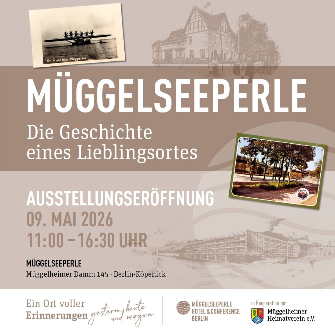 Wir laden Sie herzlich zur feierlichen Eröffnung am 9. Mai zu unserer neuen Ausstellung „Die Müggelseeperle – Geschichte eines Lieblingsortes“ ein.