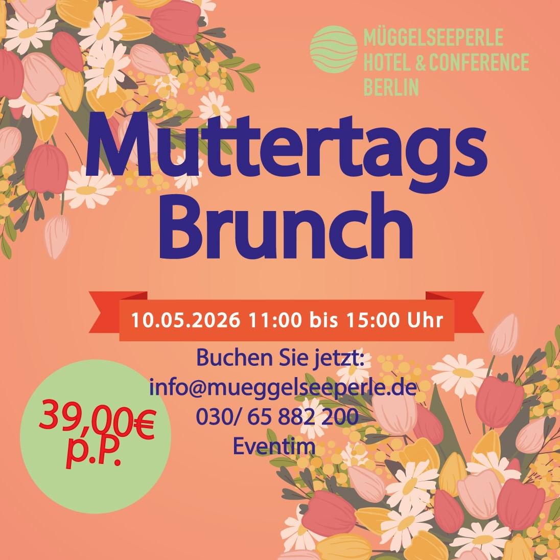 Am 10. Mai von 11:00 bis 15:00 Uhr laden wir Sie herzlich zu unserem Muttertagsbrunch in der Müggelseeperle ein.